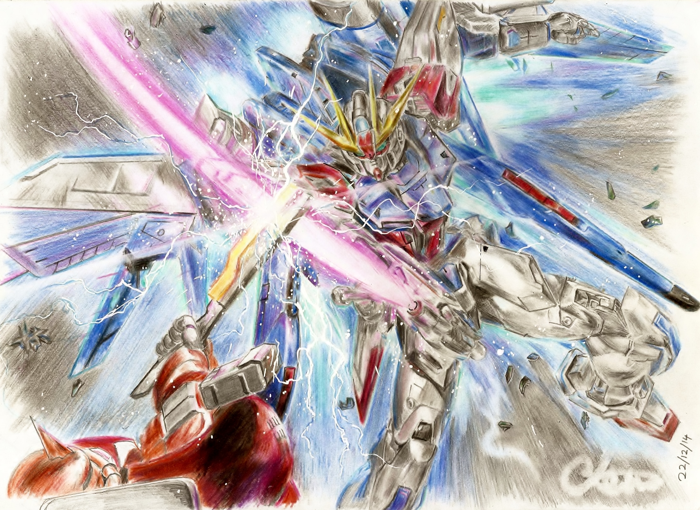 Gundam build strike on A4    Materials used:  Colleen 60 double sided colour pencils   Uni white gel pen    I am a hardcore gundam fan, who collect lots of gunpla and watch lots of gundam series... :) Gunpla is freedom!  Please vote for me! :)